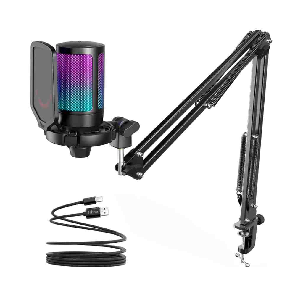 - Misc: pop filter, shock mount, gain control, tap-to-mute sensor, two-tone automatic gradient RGB lighting